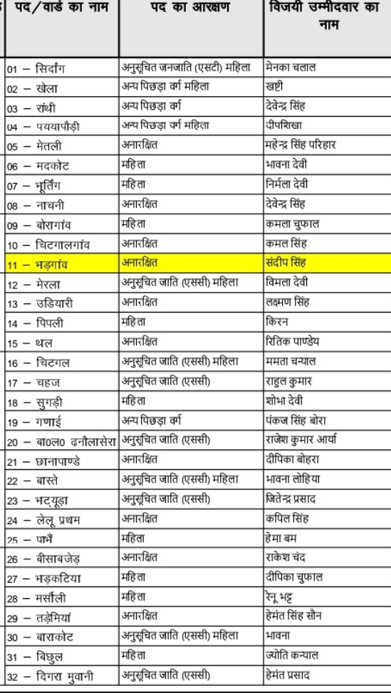 सीमांत जनपद में त्रिस्तरीय पंचायत चुनाव में 08 विकास खंड के विजयी 32 जिला पंचायत सदस्यों की सूचि….