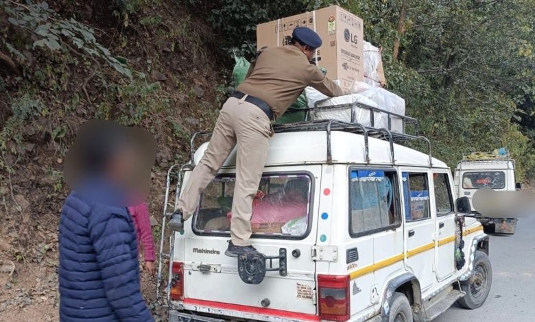 इधर थाना कनालीछीना क्षेत्रान्तर्गत हरिश्चन्द्र सिंह निवासी धारचूला द्वारा शराब पीकर हल्ला-गुल्ला, गाली- गलौच कर उत्पात मचाया हुआ था। जिसपर थानाध्यक्ष कनालीछीना प्रवीण सिंह, अपर उप निरीक्षक राजेन्द्र कुमार व कांस्टेबल संतोष प्रसाद की टीम द्वारा मौके पर जाकर उक्त व्यक्ति को शान्ति व्यवस्था भंग करने के जुर्म में धारा 81(1)(A) पुलिस अधिनियम के तहत हिरासत में लिया गया ।