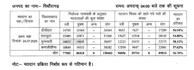 पिथौरागढ़ : अपडेट: सीमांत के चार विकास खंड, मतदान प्रतिशत